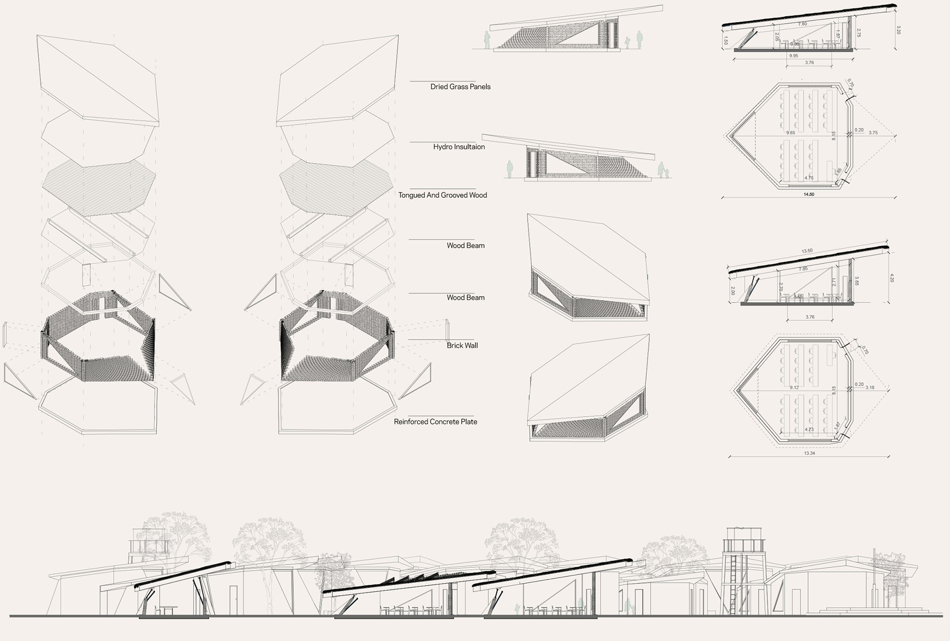 Decidimos potenciar el espacio cultural abierto organizando el recinto educativo a su alrededor y, a través de su forma, actua como refugio para que las actividades se desarrollen con un flujo de aire estable, controlando y redireccionando los vientos provenientes del lago.