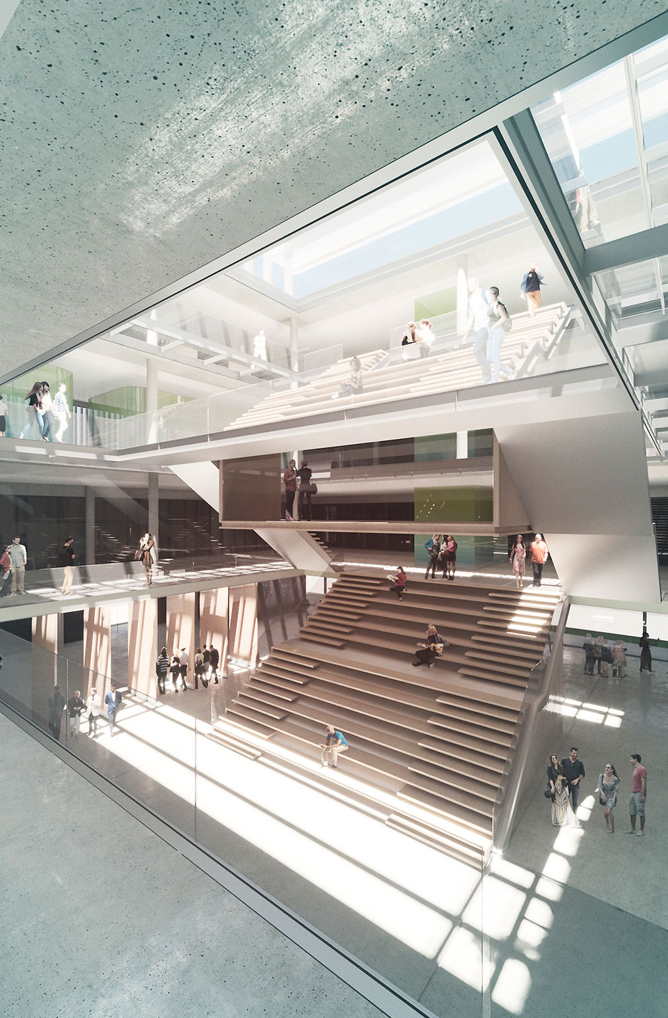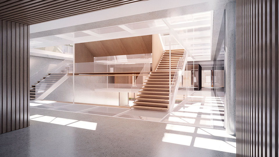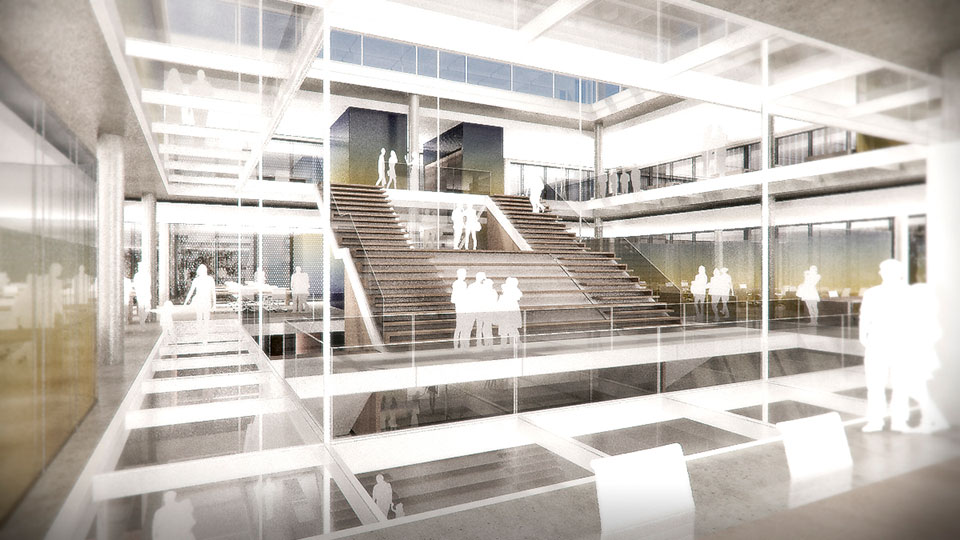 Protagonista del vacío es la escalinata principal, vinculando cual puente la administración pública con los ciudadanos. Reinterpretada como el lugar de confluencia cultural donde “administración pública y ciudadanía” pueden encontrarse, conversar, distenderse, leer y, descansar.