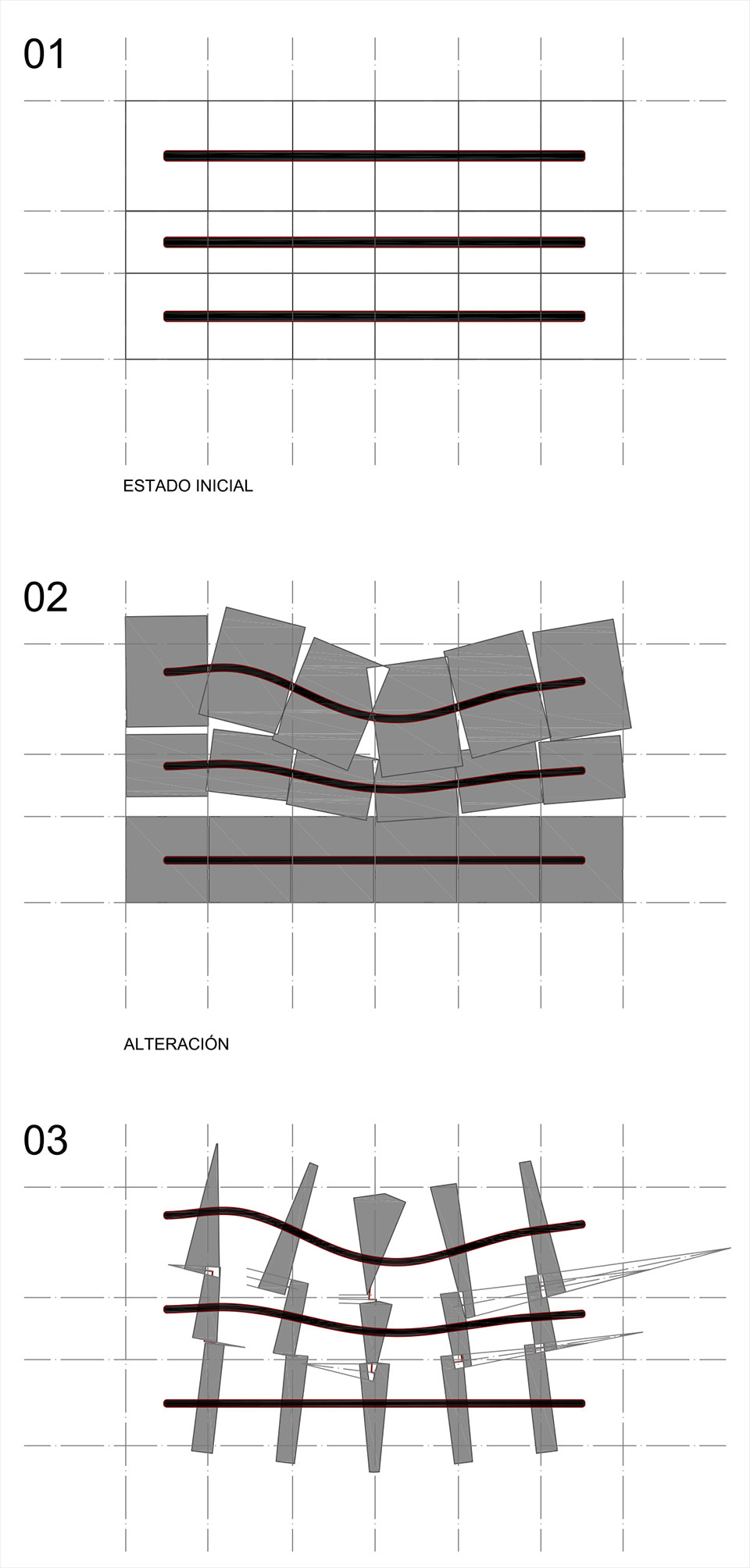 La idea detonante que dio origen al particular trazado de la propuesta se inicia con la tradicional grilla sobre la que se organizan la inmensa mayoría de las ciudades en Buenos Aires.