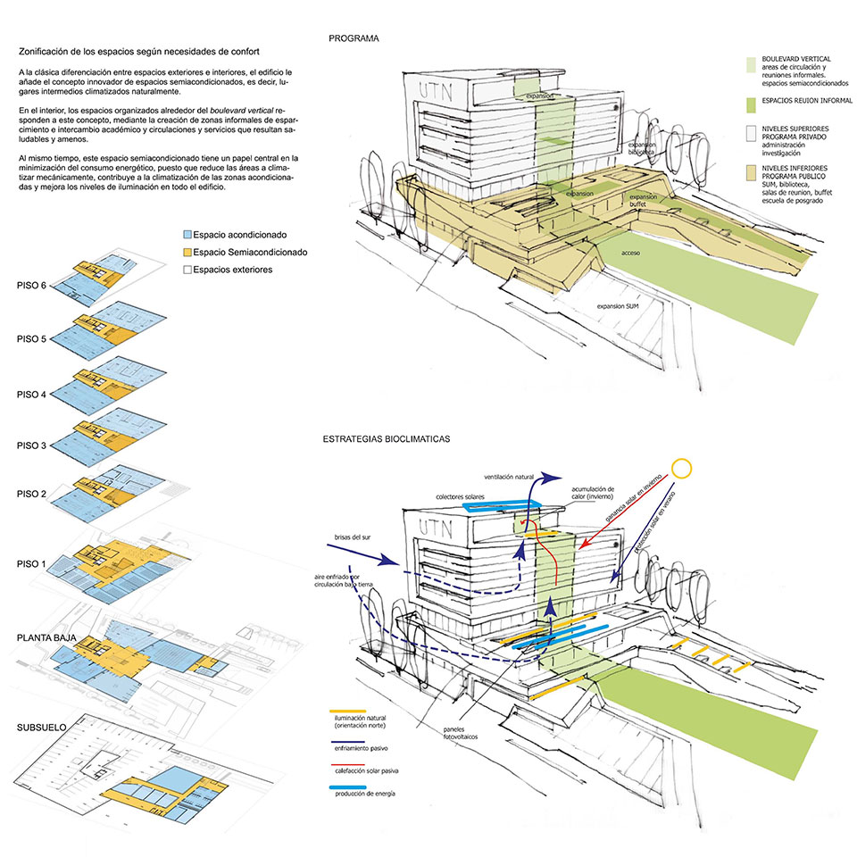En el marco del Concurso Nacional de Anteproyectos Universidad Tecnológica Nacional – Facultad Regional Mendoza, surge este edificio para Investigación y Posgrado cubriendo una superficie aproximada de 5.000m2.