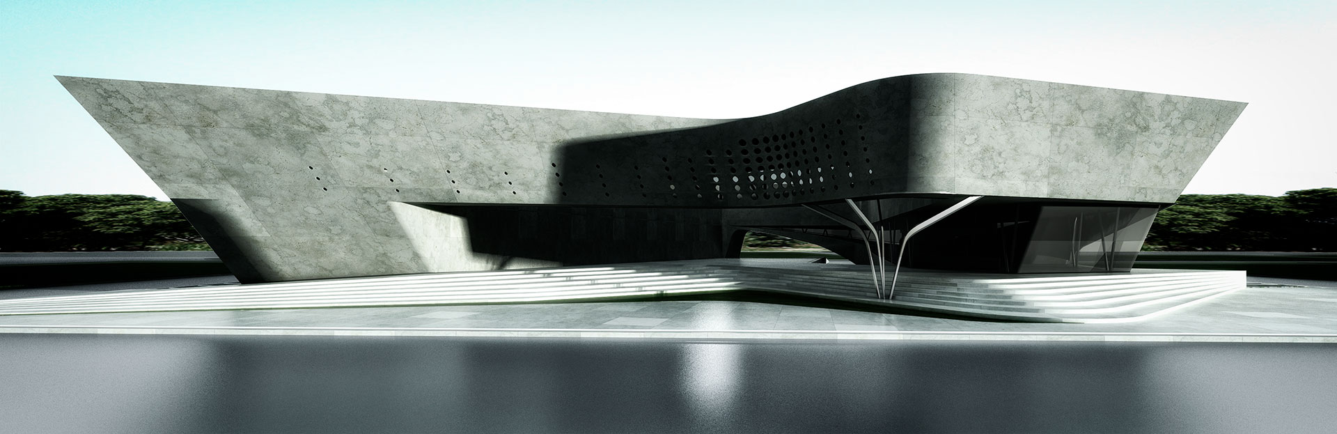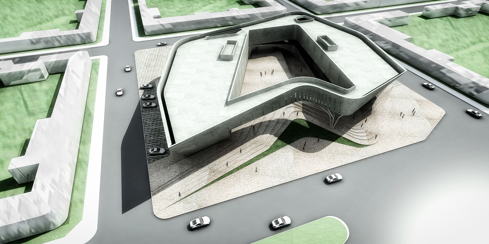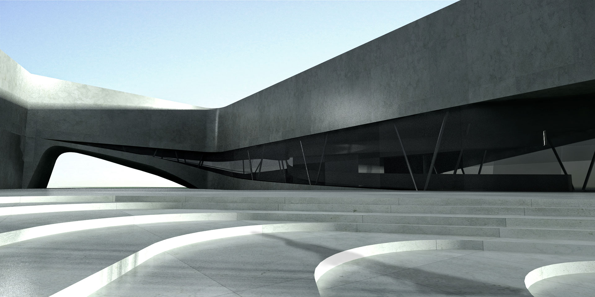 El museo se posa sobre un pasaje de esculturas accediendo por el ala norte, permeable entre la plaza de esculturas y el mar. En el ala sur, más compacta y hermética, se alberga el área museológica. En el nivel superior, las alas están conectadas formando un anillo de circulación.
