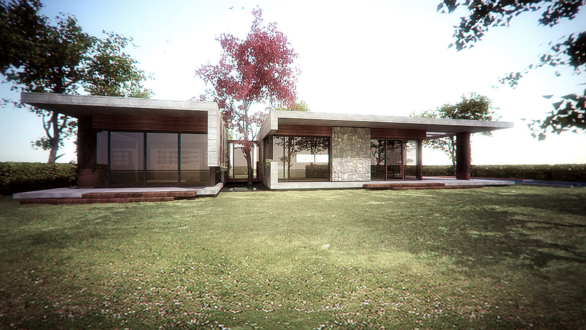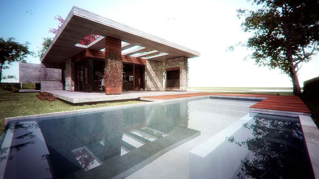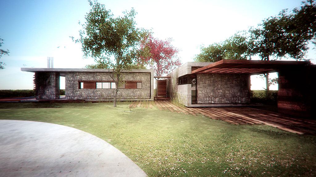 Proyecto de Vivienda Unifamiliar en el Club de Campo La Horqueta de Echeverría para comitente privado. Con una superficie de 150m2 el diseño responde a la solicitud de generar dos espacios bien diferenciados entre el espacio privado y el espacio público; articulados a través del patio de ingreso.