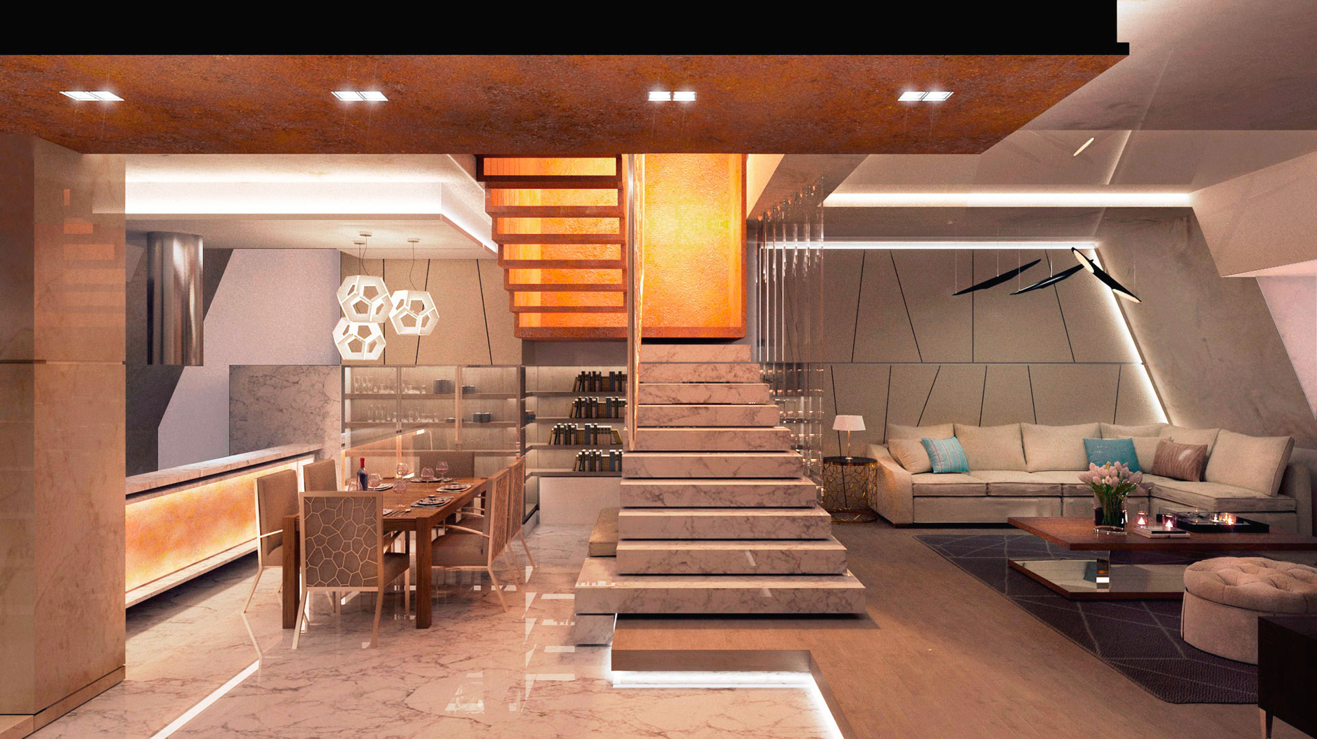 Basados en este aspecto esencial de los espacios de atico es que se planteo en el nivel inferior la mayor continuidad espacial posible. Para lograr la maxima percepcion espacial.
