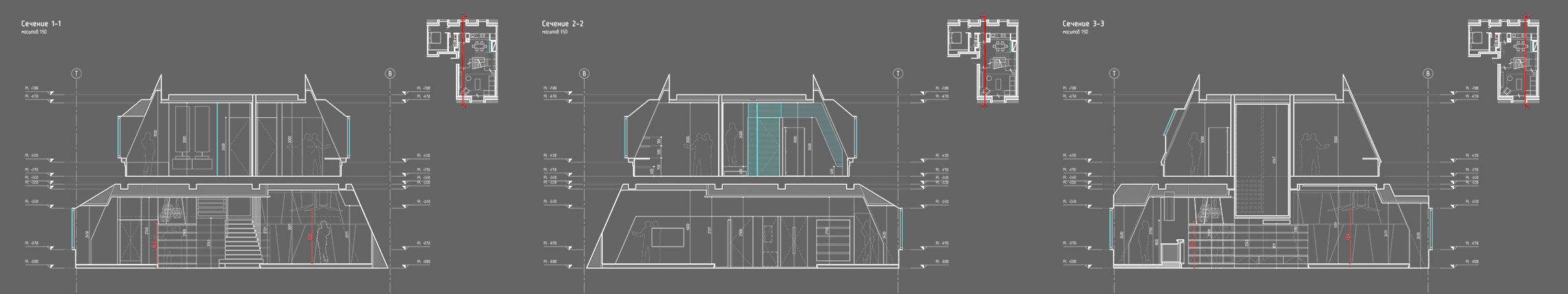 Esta concavidad hace que en los paramentos exteriores existan muros inclinados que desnaturalizan la divisiones binaria entre piso - muro y muro-techo favoreciendo la percepcion de ciertas continuidades. Fue por lo cual tomamos ese concepto de ¨continuidad¨ y lo aplicamos al modo en que viajan los materiales (continuidad piso/escalera o piso estar/revestimiento vertical estar) en el proyecto y la configuracion de ¨piezas¨ (las lenguas de cielorraso) dentro del proyecto.